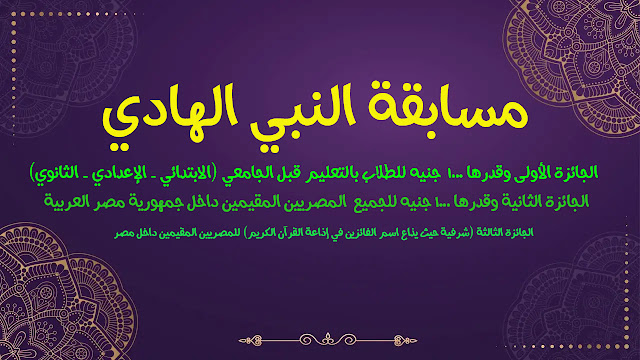فروع مسابقة (مسابقة النبي الهادي)... يرجى الالتزام بالإجابة في الفرع المخصص لك مع كتابة بياناتك كاملة وصحيحة والتأكد من ذلك قبل إرسال الإجابة